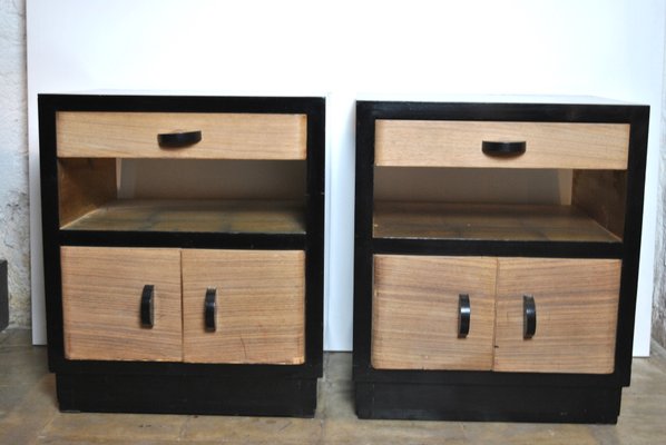 Art Deco Rosewood And Black Lacquered Wood Bedside Tables 1940s