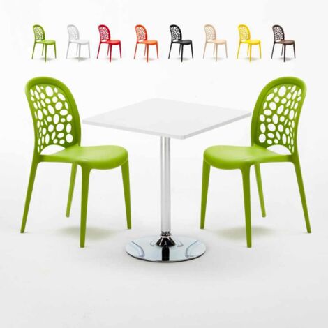Table Carree Blanche 70x70cm Avec 2 Chaises Colorees Set Interieur
