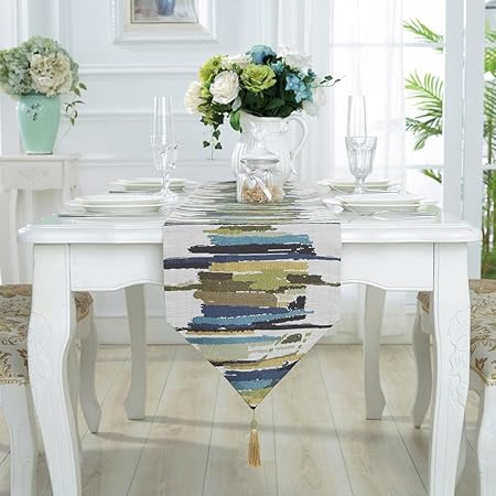 En revanche le chemin de table a motifs sera ideal pour des assiettes unies afin de creer un reel contraste. Meme en cas de liquide renverse ce chemin en non tisse ne deteindra pas sur vos nappes. Chemin de table imprime eventail bleu 1299. Le chemin de table apporte du cachet mais surtout beaucoup de charme sur une tableil est un element de decoration central qui rond la monotonie.