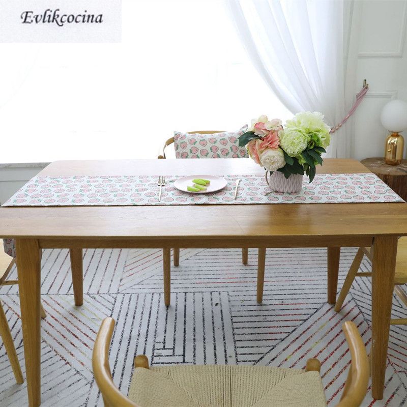 Cartoon Pink Peach Table Runner Decoracion Mesa Hogar Cotton Linen