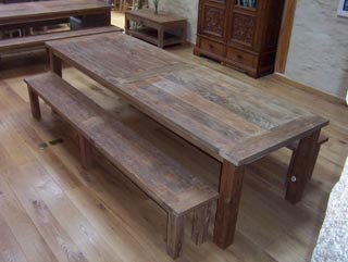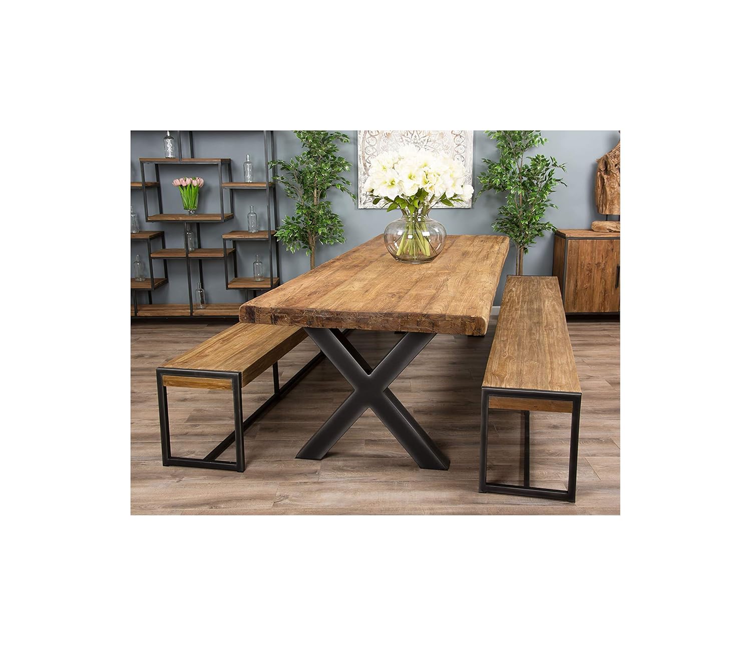 3m Reclaimed Teak Urban Fusion Cross Dining Table With Two