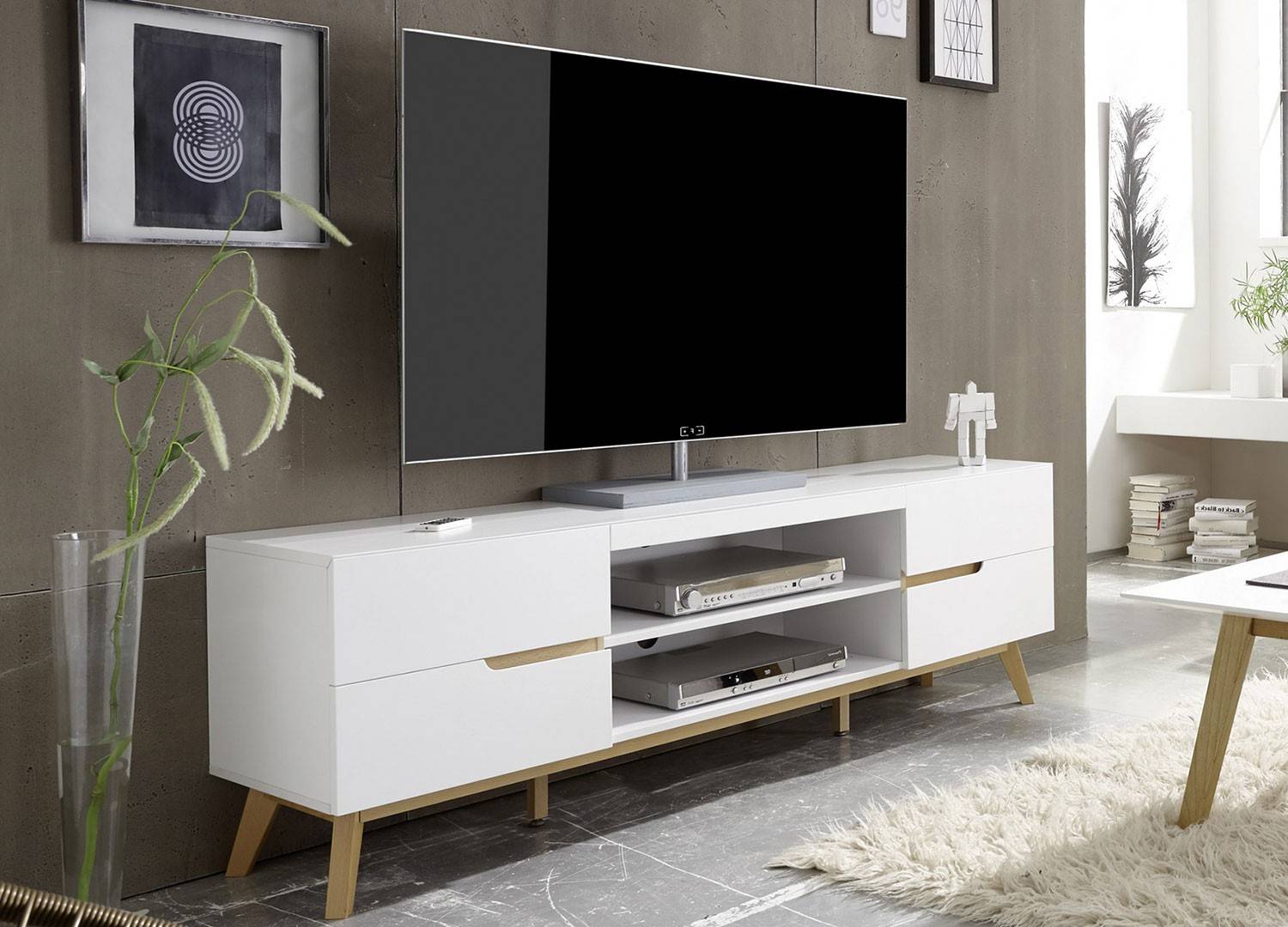 Meuble Tv Moderne Blanc Et Bois 169 Cm Pour Salon