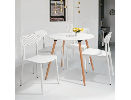 Ensemble Table A Manger Ronde Blanc Et 4 Plastique Chaises Blanc