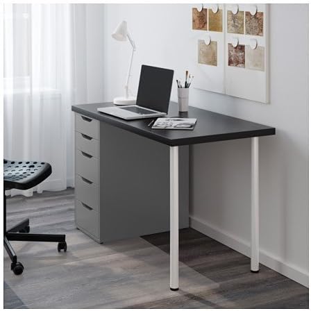 Amazon Com Ikea Computer Table With Drawers Black Brown Gray 47