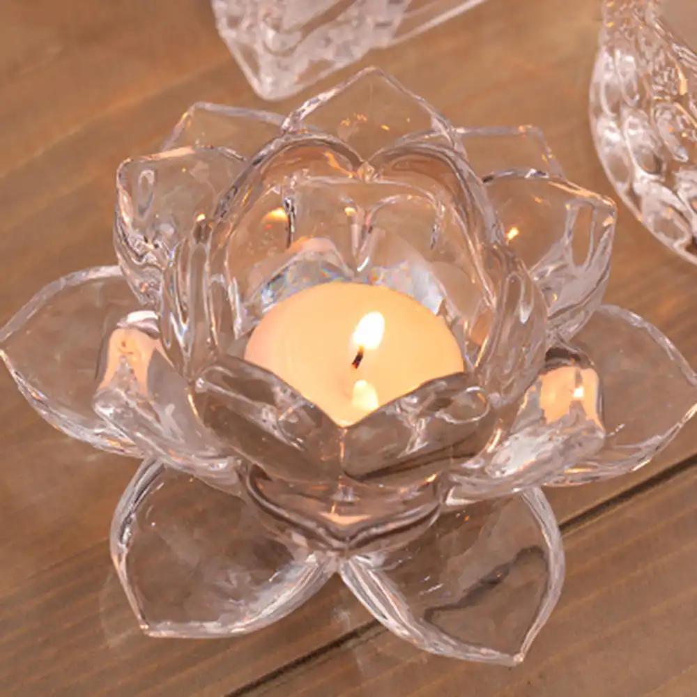 Handmade Crystal Lotus Flower Candle Holders 7 Colors Candlestick