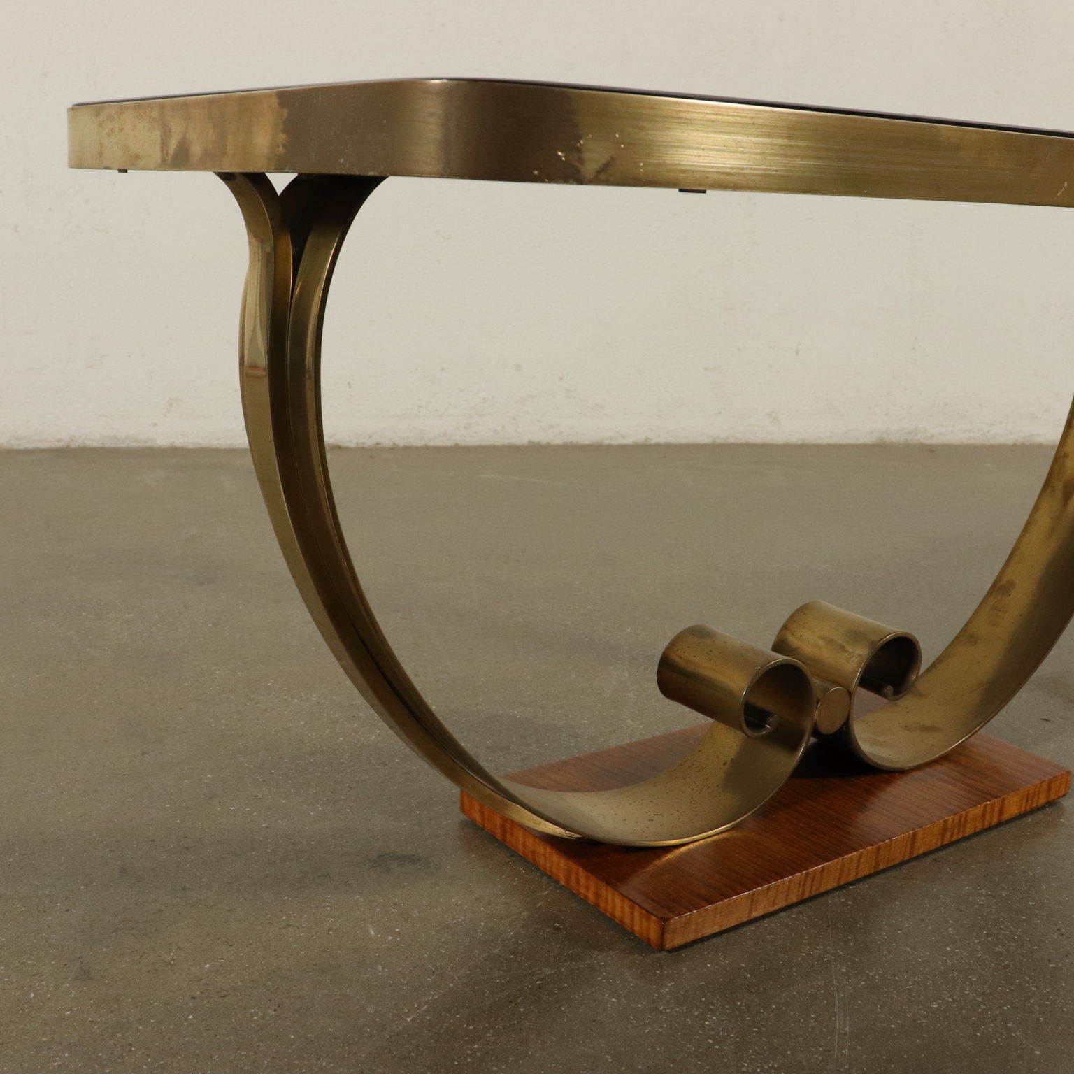 Table Basse Style Transition En Laiton Dore Et Miroir Oxyde