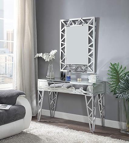 Acme Stephen Ii Mirrored Console Table In Chrome Amazon Co Uk