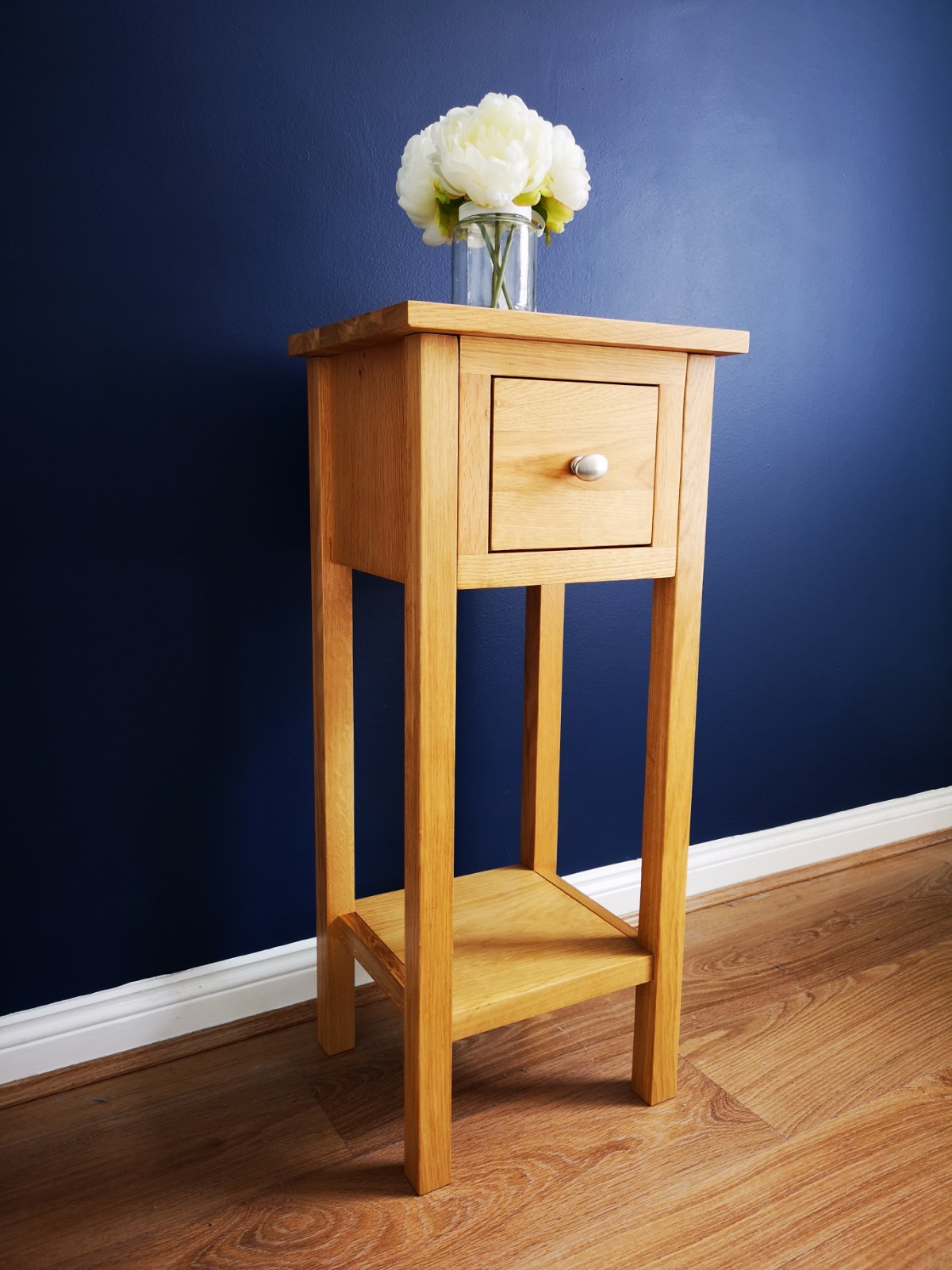 Metro Oak Telephone Table With 1 Drawer And Shelf Light Oak End