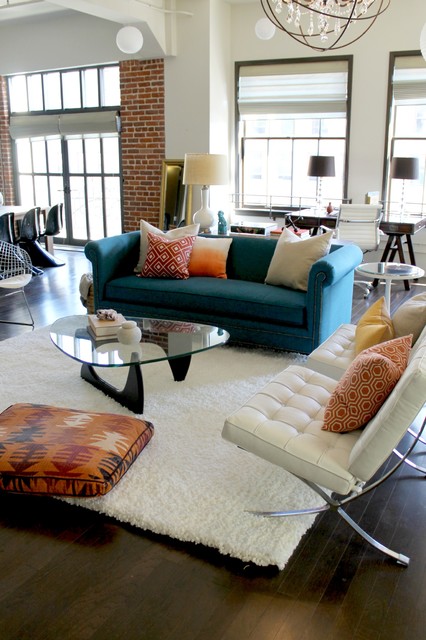 Barcelona Chairs Noguchi Coffee Table With Orange And Teal Color