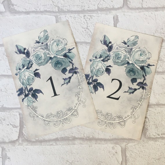 Numeros De Table De Mariage Style Vintage Noms Cartes Bleu Etsy