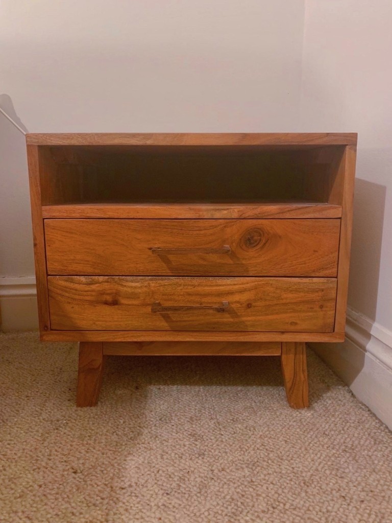 This piece comes with a beautiful mismatched oak finish. The range is calm and simple smooth tops rounded corners clean lines and a slim frame. Keep bedroom nick nacks stored away in this stylish scandi inspired bedside table. Add to wish list.