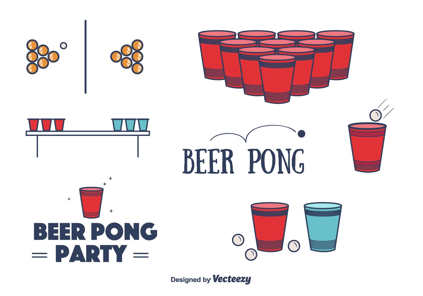 Beer Pong Game Vector Alcohol Party Game Red Cups On Table And