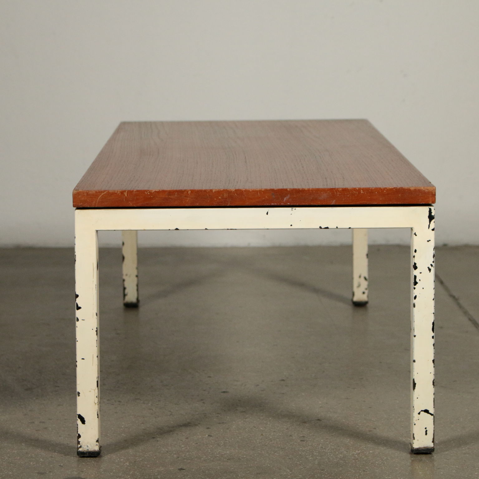 Petite Table Metal Laque Placage De Teck Bois Vintage Italie