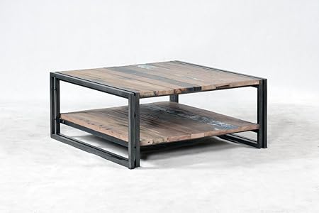 Table Basse 2 Plateaux Square 100x100x35 Style Industriel En Bois