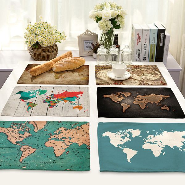 Acheter 42 32cm Mode Carte Du Monde Imprime Serviettes De Table