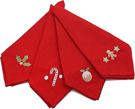 Peggy Wilkins Serviette De Table En Tissu Avec Houx Brode De Noel