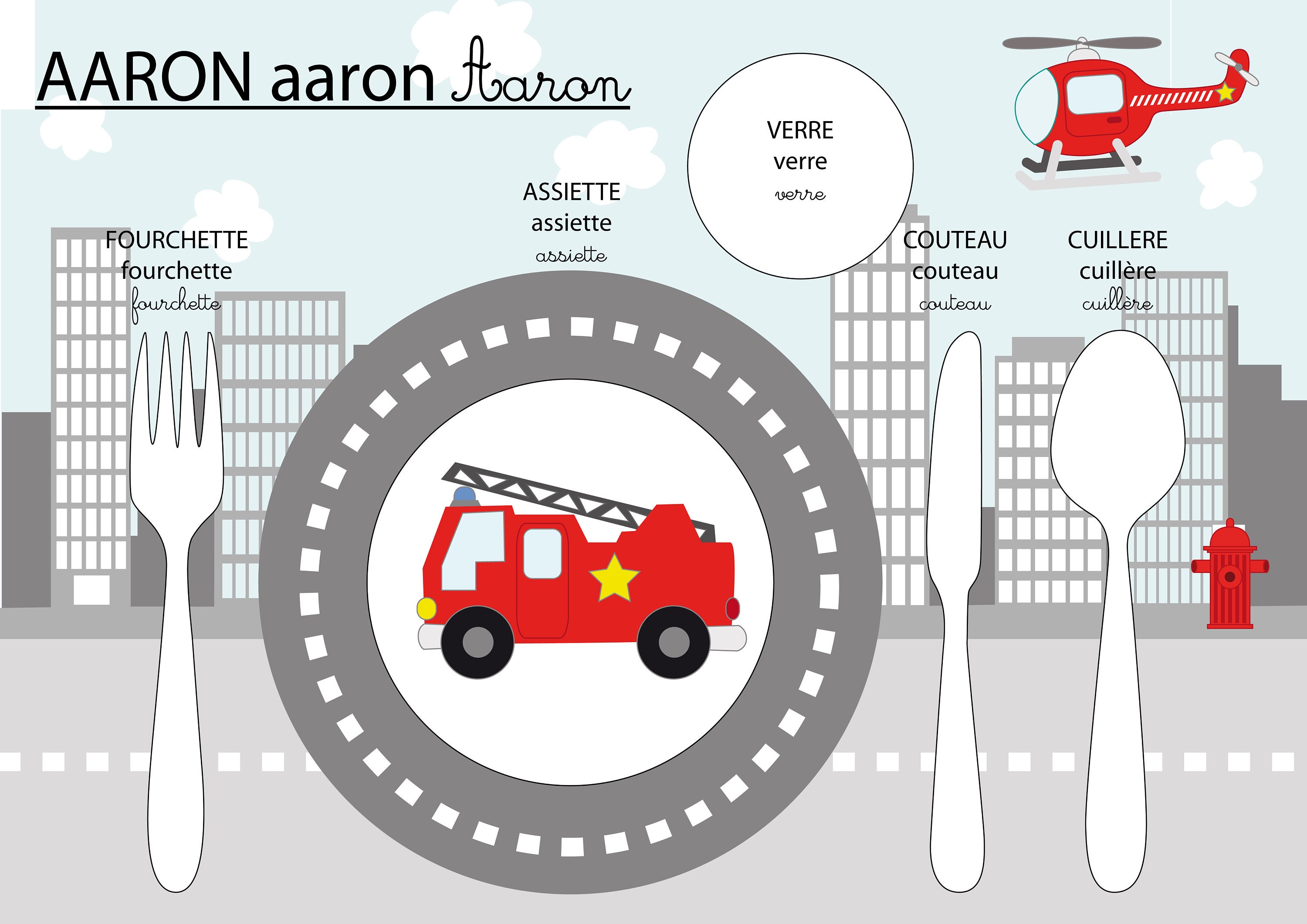 Set De Table Pedagogique Set De Table Enfant Theme Pompier Etsy