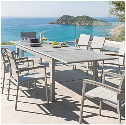 Table Extensible Azua En Bois 10 Personnes Gris Structure Silver