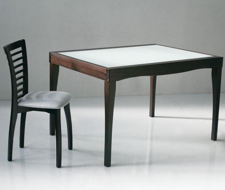 Table Repas Extensible Morgan En Verre Satine Et De Hetre 90 X 90 Cm