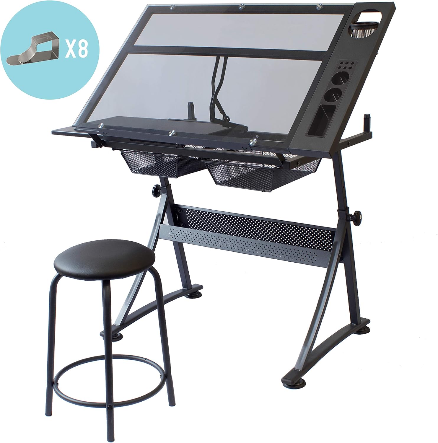 Vidaxl Table A Dessin Inclinable Avec Tabouret Pieds En Acier