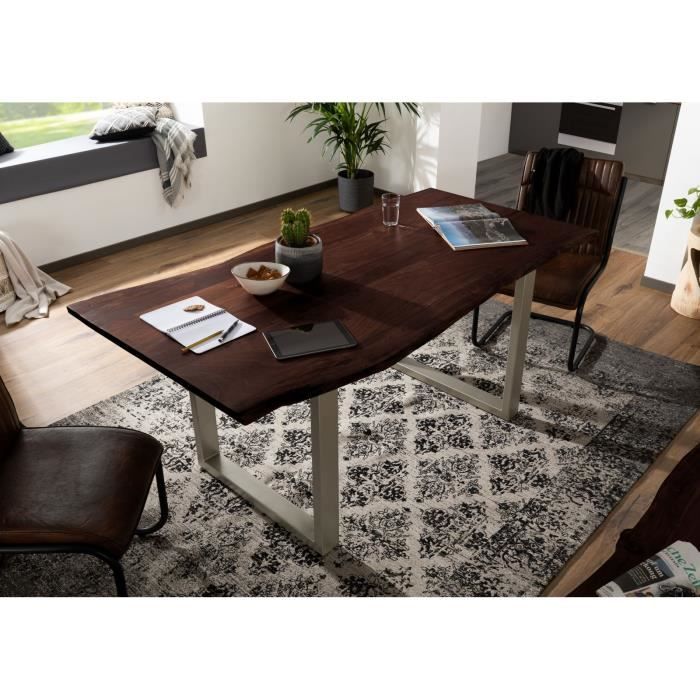 Table A Manger 180x90cm Bois Massif D Acacia Laque Gris Marron