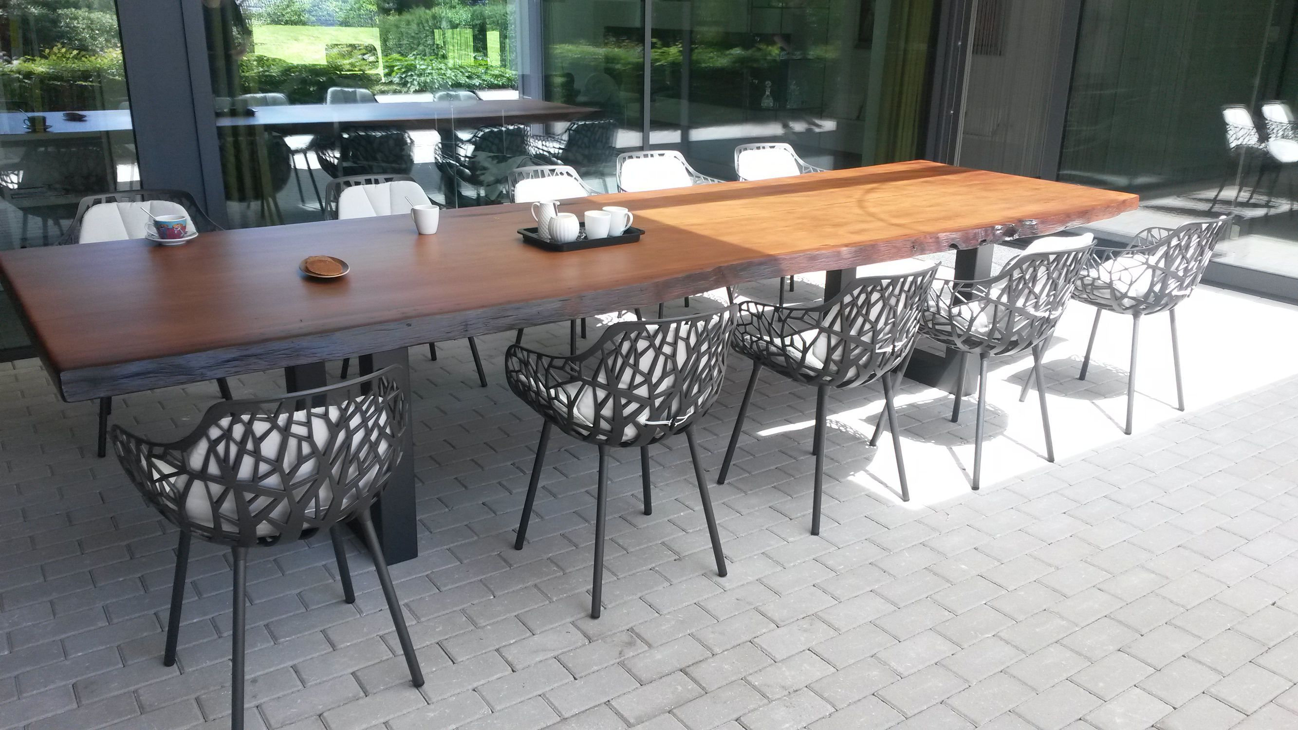 Table Suar Llive Edge Slab Tronc Arbre Pied Design Metal