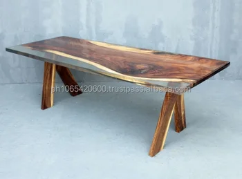 Bois D Acacia Massif Avec Table A Manger En Resine Transparente