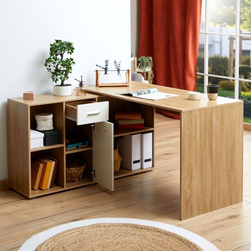 Bureau D Angle Carmen Table Avec Meuble De Rangement Integre Et