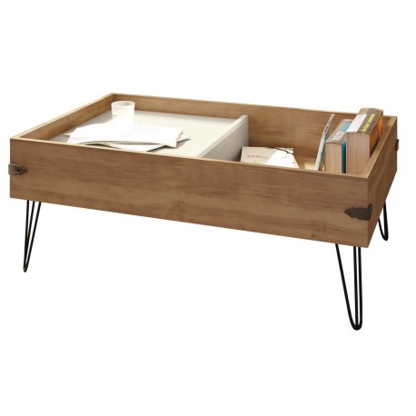Table Basse Chene 1 Tiroir Pieds Metal Beaux Meubles Pas Chers