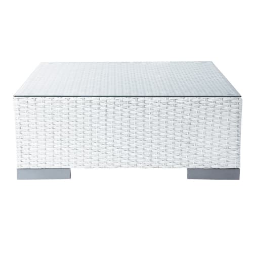 Table Basse De Jardin En Verre Trempe Et Resine Tressee Blanche L