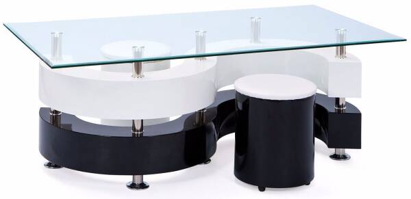 Table Basse Design En Verre Vertigo 130cm Noir Blanc