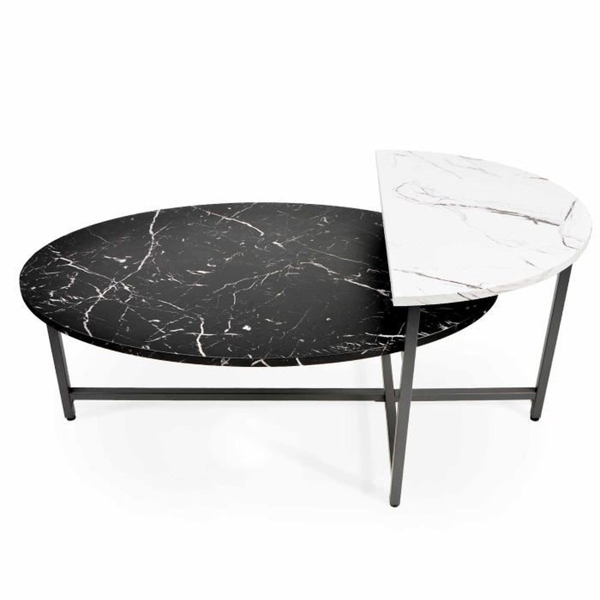 Table Basse Ovale Avec Double Plateau En Verre Imitation Marbre