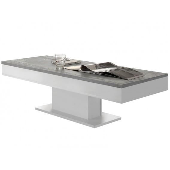 Table Basse Plateau Coulissant Effet Beton Granny Blanc Et Gris