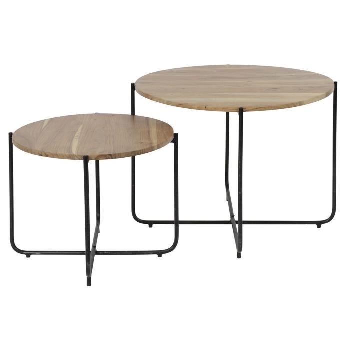 Tables Basses Gigognes Rondes En Bois Et Metal Noir Lot De 2