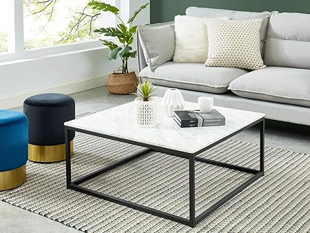 Homifab Table Basse Carree 80 Cm En Marbre Blanc Et Pieds En Metal