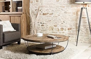 Bois Macabane Table Basse Ronde 90 Cm Cannelle 90 X 90 X 40 Cm