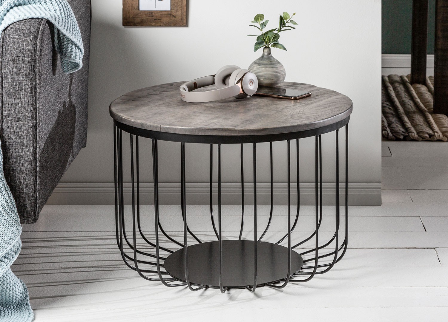 Table Basse Ronde Bois D Acacia Gris Et Metal Cbc Meubles
