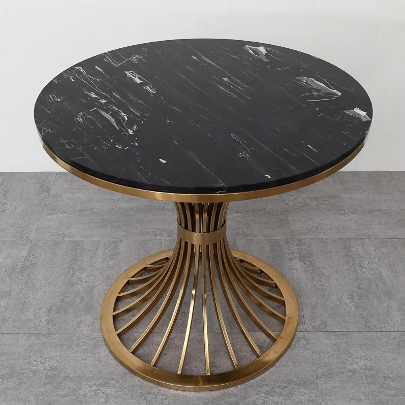 Table Basse Ronde En Marbre Clair En Acier Inoxydable Brosse