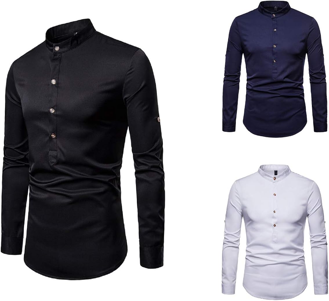 Cinna Stir Men S Long Sleeve Shirt Stand Collar Round Neck Slim