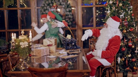 Santa Sitting At The Table Stockvideos Filmmaterial 100