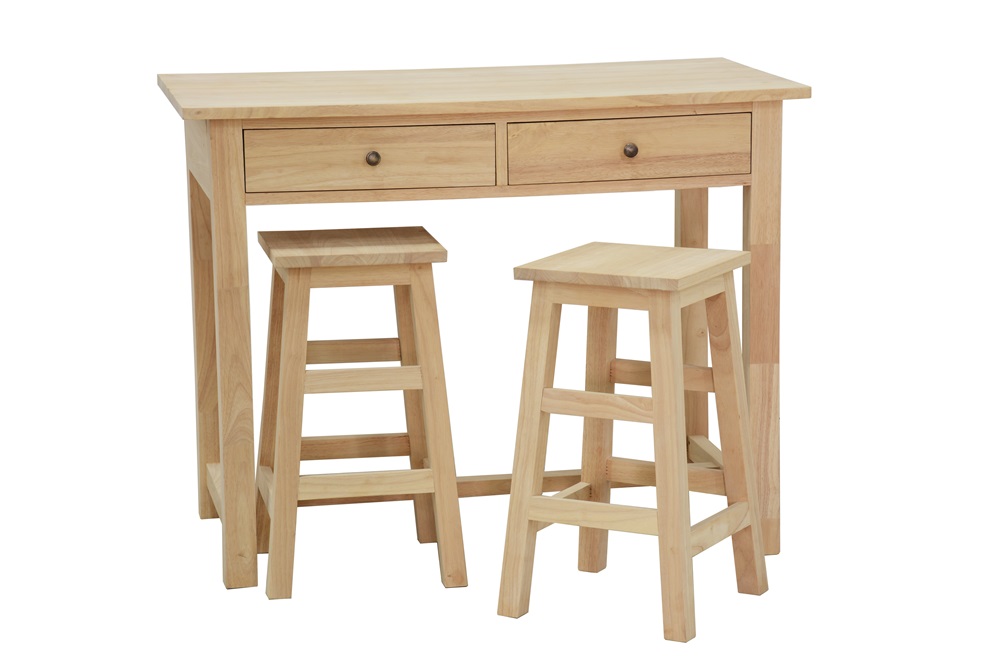 Table De Bar Hevea 110x60x85cm Avec 2 Tiroirs 2 Tabourets