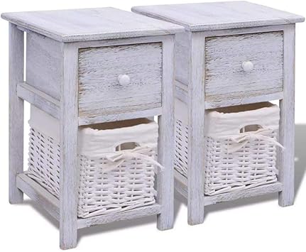 Vidaxl 2x Table De Chevet Bois Blanc Rangement Chambre A Coucher