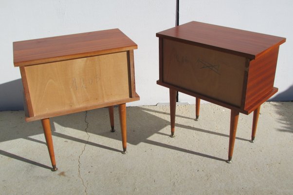 Tables de chevet vintage des annees 50 annees 60 annees 70jusquaux annees 90. Longueur 65cm profondeur 34cm hauteur 64cl. Paire de tables dappoint vintage de type scandinave grands chevets. Livraison possible sur paris me contacter.