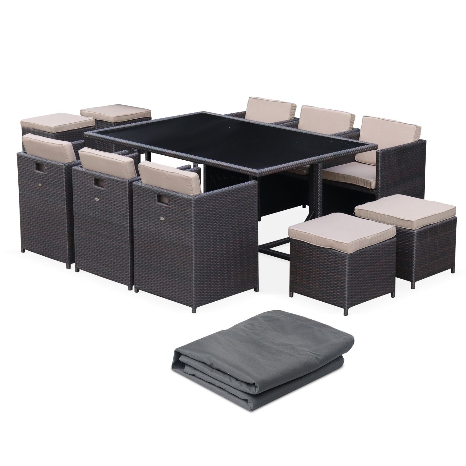Salon De Jardin 6 10 Places Vasto Avec Housse Coloris Chocolat