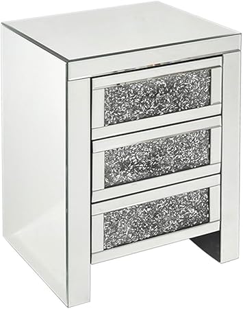 Zhaohui Excellente Table D Appoint En Verre Argente Avec 3 Tiroirs