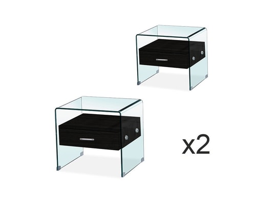 Lot De Table De Chevet En Verre Elsa Noir Meubler Design Ma