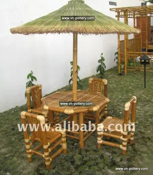 Hexagon Bamboo Table With 1 Seagrass Umbrella 4 Chairs Sofa Bed