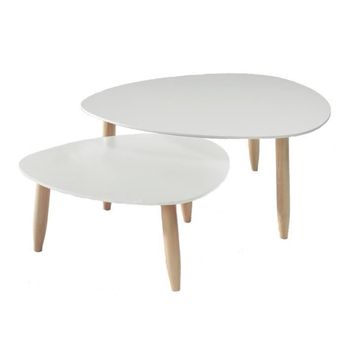 Litchi Lot De 2 Tables Gigognes Scandinave Mdf Blanc Laque