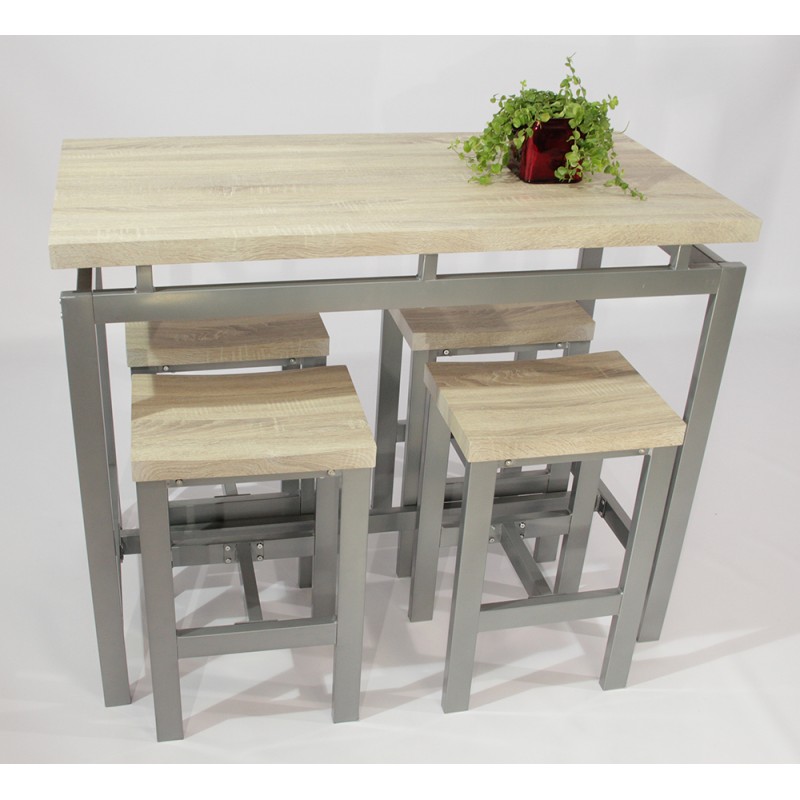 Ensemble Table 4 Tabourets Coffre Karl Coloris Chene Grise
