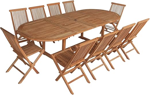 Salon De Jardin Teck Ovale Extensible 8 A 10 Places Happy Garden